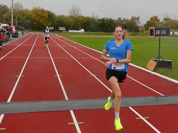 Dabei sah es zu Beginn noch ganz anders aus, denn zunächst ergriff vor allem Christoph Mattner (BMPRO Aschaffenburg) die Initiative, um neben dem bereits erwähnten Leander Fink den Vorsprung auf Sam Blake weiter auszubauen. Dies schien auch zu gelingen, denn beim ersten Kilometer war die Lücke, die die Beiden gerissen hatten, schon ziemlich groß. Doch es gelang Sam, diese recht bald zuzulaufen, um dann ebenfalls den beiden ärgsten Gegnern zu entwischen. Als er schließlich als erster ins Stadion einlief, war sowohl von Christoph Mattner, als auch Leander Fink lange nichts zu sehen.