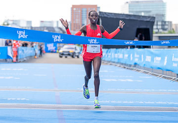 | Die Gewinnerin des Damenrennes beim Marathon: Leah Cheruto - Foto © D.SPORTS/Kenny Beele | Die beste Deutsche beim Marathon der Damen: Laura Hottenrott (Platz 2) - Foto © D.SPORTS/Kenny Beele |
