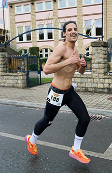 Dass man in Grevenmacher flott laufen kann, beweisen die Streckenrekorde von 29:14 Minuten (Männer/2014) und 33:04 Minuten (Frauen/2001). So schnell musste Charles "Charel" Grethen für seinen Osterlauf-Sieg diesmal nicht rennen. Gerade aus dem Höhentrainingslager in Südafrika zurückgekehrt reichte es für den zweimaligen Olympiateilnehmer (2016 in Rio de Janeiro und 2021 in Tokio) die dreiköpfige Spitzengruppe zu kontrollieren. Balázs Marx, einst ungarischer Schülermeister, sorgte meist für die Pace, konnte aber weder Grethen noch Yannik Erz abschütteln. Der Läufer vom Verein Silvesterlauf Trier hatte bereits 2024 den dritten Platz belegt. Dieses Resultat wiederholte er auch diesmal. Mit 31:54 Minuten war der 29-Jährige diesmal schneller als vor Jahresfrist (32:16), aber zehn Sekunden langsamer, als bei seinem zweiten Platz 2023.