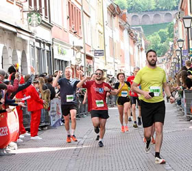 | Nach 2 Kilometern durch die Altstadt wird auf dem dritten Kilometer über die Alte Brücke der Neckar überquert | |