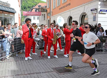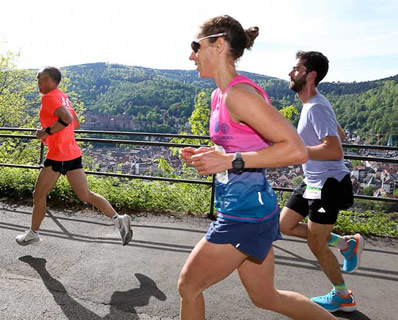 Und irgendwie können sich selbst die langlaufenden Sportler dem romantischen Zauber nicht entziehen. Vor allem, wenn im noch zarten Frühling in der vom Klima bevorzugten Region die Natur geradezu explodiert. Im Sonnenschein, alsbald nach den einführenden ersten Kilometern, den Neckarstrom über die Alte Brücke zu queren und beim Erklimmen des Philosophenwegs den Blick über die Stadt, das Tal und die gewaltige Schlossanlage schweifen zu lassen, welches es im weiteren Rennverlauf noch zu umrunden gilt, bevor sich beim wieder Eintauchen in die Gemäuer der Altstadt das nahende Ziel ankündigt.