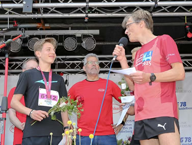 Als Gesamtsieger erreichte Henri Mihm nach 9:38 min das Ziel. Im Vorjahr war der nun 15jährige Schüler des Heidelberger Hölderlin Gymnasiums bereits dem steten Talentsucher Christian Stang aufgefallen. Damals wurde er Sechster in 10:13 min. Jetzt trainiert er unter Stangs Anleitung bei der MTG Mannheim und siegte in der gleichen Zeit, mit der Philipp Schell im Vorjahr Dritter wurde. Henri Mihm, der auch Volleyball spielt, spurtete über die Zielmatte als stünde ihm der Gegner auf den Fersen, doch Norman Korff lag als Zweitplatzierter in 9:52 min in Anbetracht der Distanz schon deutlich zurück und sein Vereinskamerad bei der TSG 78 Heidelberg, Philipp Schell, konnte sich nach 10:07 min wieder über Rang drei freuen. 2023 stand Schell als Gesamtsieger des Henkel Team-Laufs auf der Ehrentribüne. Bis runter zur U20 gehen die Altersklassen in der Top20 und lassen auf nachrückende Talente hoffen.