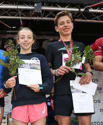 Tatsächlich wirkt die Parallele beim Ergebnis der Teilnehmerinnen wie abgeschrieben. Die Vorjahressechste Emma Stonefield, damals in 13:20 min (13:01 netto), lief nun in 11:20 min zum Sieg. Die 13jährige Schülerin der 8. Klasse am Englischen Institut Heidelberg ist Triathletin, wobei ihr Schwimmen und Laufen am besten liegen, startet im Ausdauermehrkampf für den SV Nikar Heidelberg und ist bereits zum Eintritt in den Landeskader eingeladen. Im letzten Jahr war sie hinter Lotta Pfander vom Helmholtz-Gymnasium Heidelberg in der U14 Zweite geworden, die nun ebenfalls in der U16 laufend sich mit 13:14 min vom vierten auf den dritten Frauengesamtrang verbessern konnte. Dazwischen kam Rike Kemmerich von der TSG 78 Heidelberg in 11:37 min als Zweite und W20-Siegerin ins Ziel.