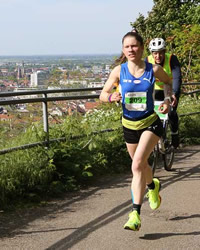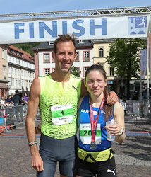 Valerie Moser vom Running Team Ortenau hatte erst auf dem letzten Gefällstück aufgegeben. "Bergab ist nicht so meins", gestand die 26jährige Triathletin (Karlsruher Lemminge) Sprint und olympische Distanz und Radsportlerin, die ihre erste Teilnahme in 1:22:49 h und Platz 2 glänzend meisterte. Sie kommt aus dem Raum Freiburg, wohnt jetzt aber in Karlsruhe und arbeitet dort in der Medizintechnik. Ganz unbekannt war ihr das Terrain aber nicht, dann bereits 2024 musste sie auf dem Philosophenweg laufen, war von der Strecke begeistert und gewann damals den Heidelbergman Triathlon. Es war heute erst ihr dritter Halbmarathon. Ihre Bestzeit lief sie im Rahmen des Drei-Länder-Marathon in Bregenz in 1:19:58 h. Sportliche Erfolge feierte sie 2023 als Baden-Württembergische Traillauf Meisterin und 2024 wurde sie Deutsche Meisterin auf der Duathlon Sprintdistanz.