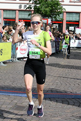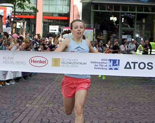 Kathrin Lehnert blieb diesmal nur der dritte Rang in 1:23:51 h. Es lief einfach nicht wie erhofft. Schon auf dem Philosophenweg nach einem Drittel der Distanz war es hart. Die Realschullehrerin für Englisch, Deutsch und Gemeinschaftskunde lief am liebsten 800m und 1500m auf der Bahn. Seit zwei bis drei Jahren ist sie aber auch auf der Langstrecke erfolgreich, hat eine Bestzeit über 10 km von 35:03 min und 1:17 Stunden über Halbmarathon. Beim Henkel Team-Lauf, bei dem sie im Vorjahr verletzungsbedingt nicht antreten konnte, gewann sie 2023.