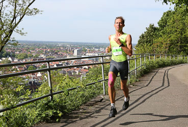 | Auf dem Philosophenweg bei km 8 hat sich Simon Stützel schon ca. 150 Meter von ... | ... Vasilii Leminskii abgesetzt |