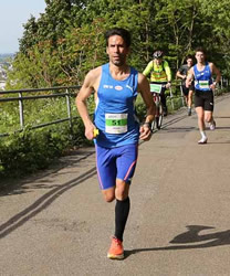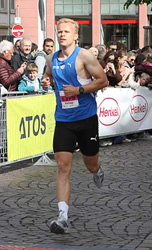 Auch der dritte Rang verleiht dem ATOS Halbmarathon einen weiteren internationalen Anstrich, wenngleich Bill Martin das Trikot des Veranstalters TSG 78 Heidelberg trägt. Im Vorjahr wurde der 34jährige US-Amerikaner Siebter, jetzt hat er einfach länger auf diesen Lauf hin trainiert und wurde in 1:11:54 h Dritter. Seit sieben Jahren ist der Projektmanager in einem Unternehmen für Impfstoffe in Deutschland und ja, alle sprechen mit ihm Englisch, bei der Internationalität der Stadt, den unzähligen Studierenden und auch an vielen Arbeitsplätzen ist dies die gängige Umgangssprache und behindern somit das Erlernen der deutschen Sprache.