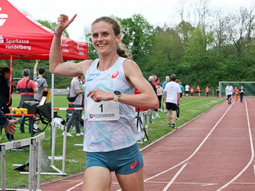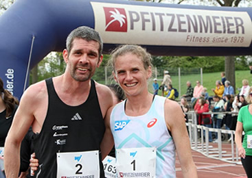 Die Anmeldung von Fabienne Königstein verbreitete sich wie ein Lauffeuer. Tatsächlich wollte sie sich den Stadtlauf am Ort ihrer Leichtathletikanfänge nicht entgehen lassen, obwohl der Vienna City Marathon erst eine Woche zurück lag. In Wien kam die Molekular-Biologin nach 2:28:49 h als beste Europäerin auf dem vierten Platz ins Ziel. Nur einen knappen Monat davor wurde sie in Nagoya/Japan in einem reinen Frauenmarathon in 2:28:20 h Dreizehnte. Ihre Marathonbestzeit von 2:25:48 h war sie im April 2023 in Hamburg gelaufen. Die 32jährige kann auf eine Reihe von Nationalteameinätze zurückblicken, errang mit dem DLV-Team 2018 die Bronzemedaille bei den Crosslauf-Europameisterschaften. Einen nationalen Einzeltitel erkämpfte sie im gleichen Jahr über Marathon. Sie startet für die MTG Mannheim - (Porträt im LaufReport - Stand 2023 HIER). Mit ihr an der Startlinie, der Trainingspartner und Pacemaker von Wien, Michael Chalupsky. Während ihr praktisch niemand den Sieg streitig machen konnte, hatte Chalupsky vom engelhorn sports team/TV Schriesheim ebenbürtige Gegner. Am Ende ging es für beide um den astreinen Hattrick nach Siegen 2023 und 2024 an gleicher Stelle.