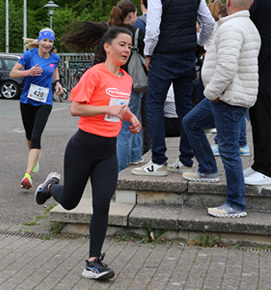 Bei den Frauen siegte die 25jährige Laura Schön in 18:27 min, die für PhysioMed Running Team startete. Im Vorjahr wurde die Juristin noch Zweite, die Triathlon auf Sprint-, Mittel- und olympischer Distanz bestreitet. Sie läuft auch Halbmarathon, wurde im Vorjahr beim anstehenden Heidelberger Halbmarathon Vierte in 1:30:47 h, und Marathon, wo sie sich im vergangenen Oktober in Frankfurt bei ihrem dritten Marathon auf 3:02:21 h steigerte. Als sportliche Ziele in diesem Jahr nennt sie den IRONMAN 70.3 Cascais Portugal im Oktober. Langfristig denkt sie auch an die Langdistanz: "Vielleicht schon 2026." Dem 5 km Lauf gab sie gern den Vorzug, startete somit gemeinsam mit ihrer Mutter in einem Rennen. Auch für Pamela Schön fällt der nächste Startschuss in zwei Wochen beim Heidelberger Halbmarathon.