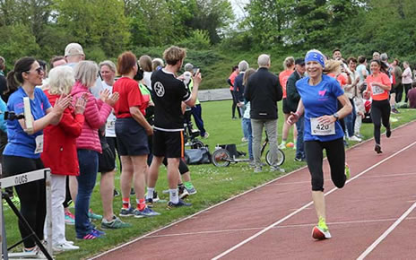 Auf Rang zwei lief Birgit Winkler von der TSG Wiesloch nach 44:31 min zum Sieg in der W55. Dieser Rang war aber hart umkämpft, mit stetem Führungswechsel. Am Stadioneingang lag sie noch auf dem dritten Rang. Die erfahrene Trainerin bei der TSG drehte erst auf der Kunststoffbahn richtig auf und die 32jährige Meike Fleck vom PhysioMed Running Team hatte nichts entgegen zu setzen, wurde Dritte in 44:35 min.