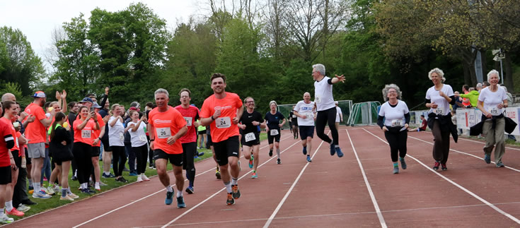 Da wurde die Wartezeit manchem Kind doch etwas lang bis ihre Läufe auf der Bahn ab 13.00 Uhr gestartet wurden. Und weil der Bewegungsdrang nicht mehr zu bremsen war, liefen gar viele innerhalb der Bahn zum Anfeuern mit. Ob das die Ergebnisse verfälschte, wenn man schon so viele Kilometer und den halben Tag auf den Beinen war? Am Ende fanden sich 340 Nachwuchskräfte in den Listen der beliebten Kinderrennen.