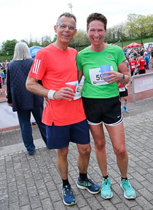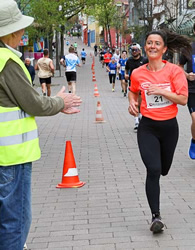 Die 59jährige Birgit Winkler trainiert seit 10 Jahren die Absolventen des Projekts von 0 auf 10 km bei der TSG Wiesloch und konnte eine Reihe ihrer Klienten im Ziel begrüßen. Im Vorjahr musste sie sich in der W55 noch der Vereinskameradin Kirsten Wieditz geschlagen geben, die nach ihrem Titelgewinn bei den Deutschen Marathon Meisterschaften in Hannover (W55/3:08:54) nicht beim Stadtlauf startete. Für Meike Fleck war es die erste Teilnahme am Stadtlauf. Sie läuft gern beim Atos Halbmarathon in Heidelberg (2024 in 1:38:32), wo sie in zwei Wochen wieder dabei sein wird.