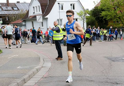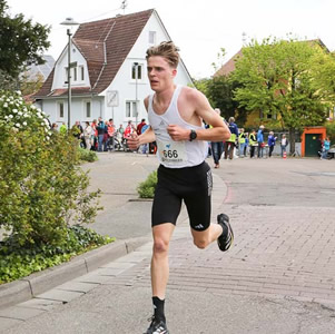 Auf dem zweiten Platz in Wiesloch landete Dustin Uhlig vom engelhorn sports team/TSG Heilbronn in 32:33 min, der zwischenzeitlich nach Mannheim umgezogen ist. Seine Bestzeit über die 10km-Distanz rührt von einem Bahnrennen in Regensburg her, wo er am 11. Juli 2020 nach 25 Bahnrunden die Zeitnahme in 29:36 min auslöste. Zum Leistungssport führte den heute 26jährigen der Triathlon. Ab 2015 ist er aber nur noch gelaufen, hat eine Halbmarathon-Bestzeit von 65:22 min. Nur noch gelegentlich schwimmt er oder fährt Rad. Nach absolviertem ersten Staatsexamen in Jura fehlt ihm die Zeit für Leistungssport auf dem beruflichen Weg zum Wirtschaftsanwalt.