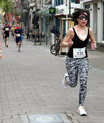Die Bedingungen waren danach. Es gab auch schon weniger Plusgrade beim Stadtlauf in Wiesloch und wenn sich diesmal die Sonne zeigte, war es einen Moment schon fast zu warm. Für die Favoritin alles kein Hindernis. In Wien lief man bei einem Grad plus los, dafür gibt es die passende Kleidung, dort störte allerdings ein scharfer Wind, den Pacemaker Michael nicht immer vollkommen abschirmen konnte. In Wiesloch lief sie unangefochten zum Sieg in 34:09 min. Nach diversen Verletzungsproblemen und langer erzwungener Laufpause hatte ein Physiotherapeut in Kenia ihre Beschwerden mit einem Wundergerät beseitigt. Ob Voodoo oder Wissenschaft, Hauptsache es hilft. Auch beim Stadtlauf blieben trotz der beiden Marathonläufe Verletzungen aus. In drei Wochen wird sie bereits wieder in Japan starten, bei einem Einladungsrennen ihres Ausrüsters asics, der in Tokio im Rahmen eines 5km Laufs die neueste Schuhentwicklung präsentieren wird.