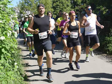 Diese Prognose sollte sich dann auch als sehr zutreffend erweisen, denn während der Läufe stieg das Thermometer noch auf 23 Grad Celsius an. Dennoch gab es keine negativen Zwischenfälle, denn die Mitlaufenden hatten sich gut auf das warme Wetter eingestellt, zumal der Veranstalter mit zwei Verpflegungsstellen bei den Kilometermarken 3 und 6 reichlich Flüssigkeit für die Mitlaufenden bereithielt.