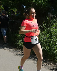 Im Frauenrennen war Marlene Stallmann an der Spitze des Feldes vom Start weg allein auf weiter Flur und sicherte sich den Gesamt- wie auch Altersklassensieg in der Frauen-Hauptklasse (WHK) in 41:04 min. souverän. Die zweitplatzierte Sophie Möller hatte schon einen beträchtlichen Rückstand und konnte ihr Rennen nach 43:26 min. beenden, hatte aber ihrerseits von hinten keine herannahende Konkurrenz zu fürchten. Denn die drittplatzierte Dilan Sahin, die auf das letzte freie Treppchen stieg, kam erst nach 45:42 min. ins Ziel. Dieser Bronzeplatz brachte ihr zugleich auch den Altersklassensieg in der W30 ein und bescherte ihrem Verein Bridgerunners Düsseldorf eine weitere Podestplatzierung. 72 Frauen und 141 Männer kamen beim längsten Lauf des Tages erfolgreich ins Ziel.
