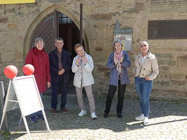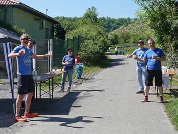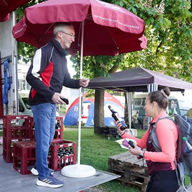 | Begrüßung durch freundliche Helfer (hier in Talheim) mit reichlichem Angebot | . und einem Schluck Trollinger! |