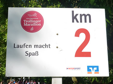 | Läufer-Weisheiten auf jedem Kilometer-Schild | Die Pacemaker tragen bereits das schicke Trolli-Finishershirt |