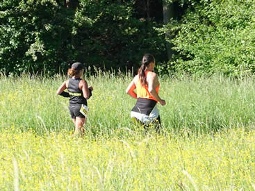 | Meine Helden von der 5h-Laufgruppe | Man sieht Daisy (li.) und Alex in herrlicher Landschaft. Was man nicht sieht: sie laufen barfuß |