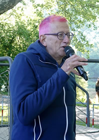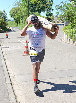 War man in den letzten Jahren kulant und ließ die Zeitmessung noch bis gut 6 Stunden laufen, wird heuer zur offiziellen Zielzeit 5:45 Stunden abgeschaltet. Freilich hat das auch Gründe wegen der Streckensicherung, da oft auch auf normalen Verkehrswegen gelaufen wird. Wie dem auch sei, erstmals trifft es auch Mamo Topyürek, der wie immer mit seinem über 20 kg schweren Baumstamm auf den Schultern unterwegs ist. Er bekommt dennoch seine Medaille und freut sich auf seinen Rekordversuch in diesem Jahr, wo er die 270 km um den Bodensee schaffen will - natürlich mit hölzernem Gepäck.
