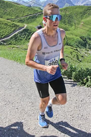 "Nach 3:40 und 4:00 Minuten für die ersten beiden Kilometer war das Feld natürlich schon weit auseinandergezogen und ich musste auch abreißen lassen", gestand Dominik Notz, der dennoch sein bislang stärkstes Bergrennen abliefern konnte. "Natürlich war es ein Nachteil, die komplette Strecke bei der Hitze alleine laufen zu müssen. An den Wasserstellen konnte ich mir allerdings etwas Kühlung verschaffen. Platz zwei ist eigentlich für mich ein optimales Ergebnis!" Mit 1:02:01 Stunden lag er allerdings 2:29 Minuten hinter Lukas Ehrle, den er in einer "anderen Liga" laufen sieht. |