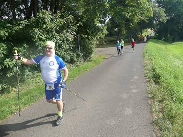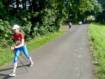 | Beim 10 km Nordic Walking Wettbewerb hat Evelyn Schöfer gut lachen. Sie wird schnellste Frau | Sigurd Haarstark (RLT Rodgau) belegt heute bei den Männern den 5. Platz |