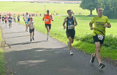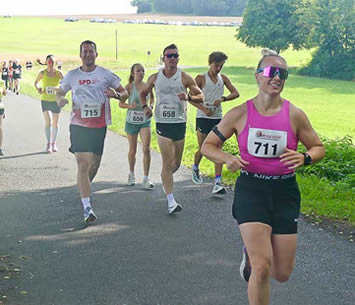 | Lokalmatador Heiko Müller (vorn) vom LT Unterreichenbach wird 2. auf der 5km Strecke | Lena Enders kürt sich zur Siegerin im 5km Lauf |