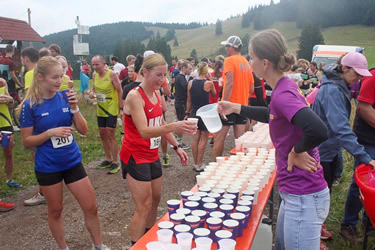 | Wasserverpflegung gab es an drei Stellen auf der 10,4 Kilometer langen Strecke mit 750 Höhenmetern, sowie im Ziel mit zusätzlichen Isogetränken und Obst | |