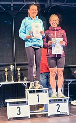 Auch bei den Damen waren Platz 2 und 3 früh im Rennen entschieden. Maya Herzer (DHBW Mosbach) und Laetitia Bury (hpc-trimaster), oft gemeinsam in Mosbach trainierend, wollten ein gemeinsames Tempo anschlagen. Doch schon nach 1km musste Laetitia ihre Mitstreiterin ziehen lassen. Maya wurde mit 42:42min Zweite, Laetitia mit 44:09min Dritte.