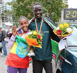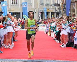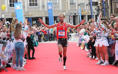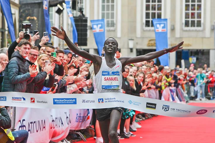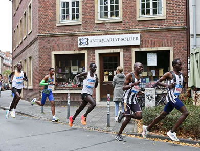 | Der Sieger des 23. Volksbank-Münster-Marathon Samuel Kiplimo Naibei verpasst den Streckenrekord um 14 Sekunden |