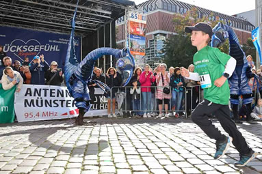 Der Lauf für die Jüngsten führt über die besonders publikumsgesäumten letzten 1,5 Kilometer ins Ziel auf dem Prinzipalmarkt. Es gibt auch die Möglichkeit der Teilnahme für beeinträchtigte Menschen. Die sehr begehrten Startplätze sind auf 350 limitiert. Die Kinder starten in kleinen Gruppen und kommen zusammen mit den Marathonläufern ins Ziel. Das ist für alle sehr emotional und für die Kinder ein herausragendes Erlebnis.
