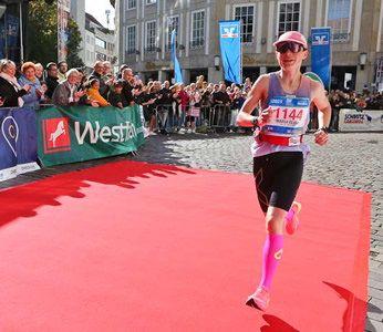 | Volksbank-Münster-Marathon - ein Stadt- und Landschaftslauf mit viel Stimmung, sowohl auf der Strecke als auch beim phänomenalen Zieleinlauf auf dem roten Teppich | |