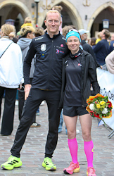 Elias Sansar vom TuS Eintracht Bielefeld landete auf dem nächsten Platz. Zehnmal hat er die nationale Wertung in Münster für sich entschieden. Er ist seit Jahren der verlässlichste Läufer aus der Region, läuft bereits in der Altersklasse M45 und siegte in dieser Klasse in 2:27:38 h. Nur eine Woche davor hatte er in 2:24:57 h beim Kassel Marathon die M45 gewonnen und wurde dort Gesamtsiebter. Kaum im Ziel dachte er schon an seinen nächsten Marathon. Nicht ungewöhnlich für diesen Ausnahmeathleten, der seine Bestzeit von 2:21:03 h vor 17 Jahren aufgestellt hat und unzählige Marathons in kurzen Abständen unter 2 Stunden 30 gelaufen ist.