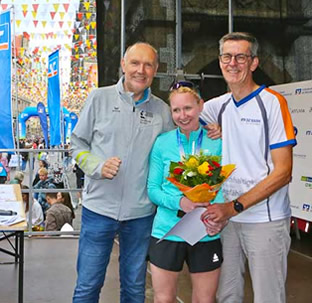 Die mit 2000 Euro dotierte Sonderwertung für die schnellste Deutsche ließ sich Maria Elisa Legelli aus Füssen erneut nicht entgehen, war aber weitaus früher im Ziel als bei ihrem letztjährigen Gewinn der Sonderwertung. Damals wurden für sie 2:49:27 h gestoppt, diesmal lief die 33-Jährige für Laufarena Allgäu bereits nach 2:40:39 h ins Ziel und verbesserte sich vom 7. auf den 4. Gesamtrang der Frauen. Erst in diesem Frühjahr lief sie persönliche Bestzeit beim London-Marathon und steigerte sich nun erneut: " trotz Wind ab Kilometer 25." Vor zwei Wochen wurde sie Bayerische Halbmarathon-Meisterin blieb dabei aber hinter ihrer Bestzeit von 1:16:38 h, die sie in Paris gelaufen war. Die Digitalisierungsexpertin in der Energiebranche ist eine Vielstarterin, ist im laufenden Jahr bereits 15 Rennen gelaufen, davon bei 13 mindestens Halbmarathon. Sie hat eine Vorliebe für Trails und gewann 2025 die 44 km lange Distanz beim Zugspitztrail. Für das kommende Jahr hat sie den Vienna City Marathon in Wien geplant.