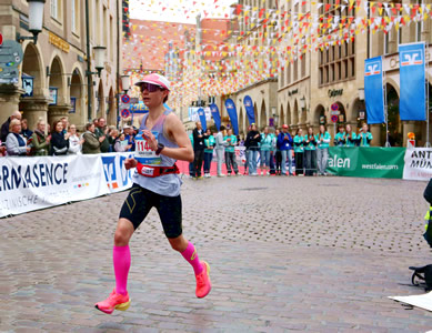 "Alles richtig gemacht", kann man dem Organisationsteam attestieren, denn in der Top-ten der teilnehmerstärksten Marathonveranstaltungen Deutschlands rangieren ansonsten nur Städte mit viel mehr Einwohnern. Die mit ähnlicher Bewohnerzahl wie Münster haben im Verlauf der Jahre ihren Marathon teils ganz eingestellt oder Überleben nur aufgrund ihres Rahmenprogramms und kommen beim namensgebenden Lauf nicht einmal in den vierstelligen Bereich. Das Ziel auf der Königsdistanz erreichten in Münster 3114, knapp 40 Prozent mehr als im Vorjahr: Davon waren 766 Frauen, die mit einem Zuwachs von fast 60 Prozent zu 2024 ihren Anteil an den erfolgreichen Teilnehmern auf ein Viertel steigerten.