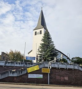 | Zentrale Ankündigung in der Ortsmitte ... | ... für den 46. Pfinztallauf in Berghausen (Foto © Jens Geiger) |