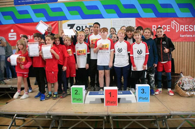 | Das Team der Buchwaldschule Kleinsteinbach mit viel Motivation am Start | Ehrung Schülermannschaftslauf (Foto © Jens Geiger) |