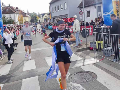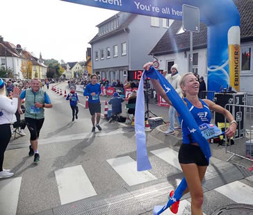 Mittlerweile der W45 angehörend, hat die zur regionalen Spitze gehörende Bettina Englisch fast nichts von ihrer damaligen Form eingebüßt. Für sie wurde heute eine Endzeit von 1:21:45 h erfasst. Sandra Burkhardt, die schon viele zweite Plätze bei Laufveranstaltungen in Baden-Württemberg errungen hat, brachte ihren Lauf nach 1:21:57 h ins Ziel. Zuzüglich zum zweiten Gesamtplatz holte sie sich in ihrer Altersklasse W30 den Siegerkranz ab. Dritte wurde Sophia Salzwedel, die einen weiteren Podestplatz für das Team Optimove by Pudel in Beschlag nehmen konnte. In einer Zeit von 1:27:27 h erzielte sie auch den W35-Sieg.