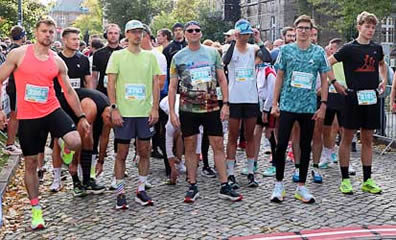 | Konzentration vor dem 10km-Start und ... | ... Blick vom "Marathon Tor"auf das 10km-Starterfeld |