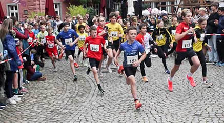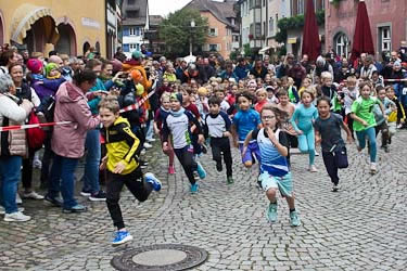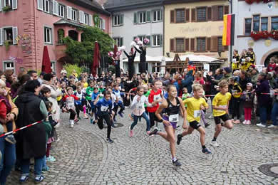 | Die Bambini eröffneten das Lauffest in der beliebten Touristenstadt über der die Burgruine Staufen thront | |