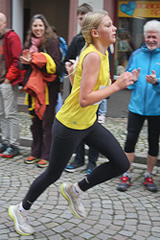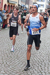 Bei den Männern stand überraschend Markus Görger, der zu den besten Langstreckenläufer Deutschlands gehört und auch international Erfolge verbuchen konnte, an der Startlinie. Görger, der viele Jahre in Freiburg lebte und studierte, feierte seine ersten großen Erfolge im Trikot des LAC Freiburg, ehe er zur LG Region Karlsruhe wechselte. Inzwischen wohnt er wieder in Frankreich, in der Nähe von Belfort. "Ich war in Freiburg zu Besuch bei Freunden aus meiner Studentenzeit. Da bot sich ein Abstecher nach Staufen an. Ich wollte eigentlich nur als Zuschauer beim Stadtlauf sein .Dann habe ich mich aber kurzfristig für einen Start entschieden", äußerte sich Görger. Und gleich nach dem Startschuss stürmte er an die Spitze und lief der Konkurrenz davon. Schon in der ersten von sechs Runden hatte er einen deutlichen Vorsprung, baute diesen von Runde zu Runde weiter aus und lief mit der ausgezeichneten Zeit von 17:32 Minuten als Sieger durchs Ziel "Es hat mir Spaß gemacht nochmals in der Region zu laufen. Der Lauf hat mit sehr gut gefallen und die Stimmung war super", so Markus Görger. Sein nächstes Ziel sind die deutschen Crosslaufmeisterschaften im November in Darmstadt.