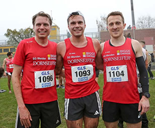 Am Vortag sah es noch umgekehrt aus. Schnellster Jung-Master der Mittelstrecke war "natürlich" Fabian Jenne (M35), die M40 sicherte sich Christian Wiese vor Michael Lang. Beim über 7,5 km führenden Langstreckenlauf gewann Timo Böhl die M35, die M40 sicherte sich Tobias Gröbl deutlich vor Christian Wiese.