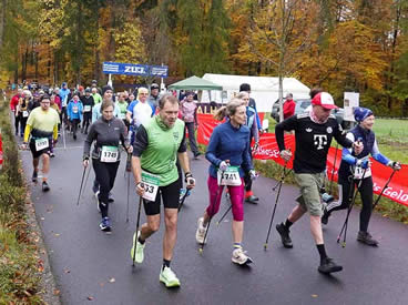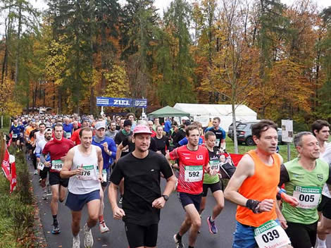 Wie schon beim Walker-Start bekommen auch die Läufer ihr traditionelles Feuerwerk, bevor Günther Wenzel den Start für über 500 Teilnehmer freigibt. Das gewohnt schöne Bild, wenn sich die Läuferschar in Bewegung setzt und nach ein paar hundert Metern in den Wald eintaucht. Wie immer mit der raschen Pulsbeschleunigung durch den ordentlichen Anstieg bis zur Kilometermarke eins. Dann sollten doch schon die meisten Höhenmeter geschafft sein, oder?