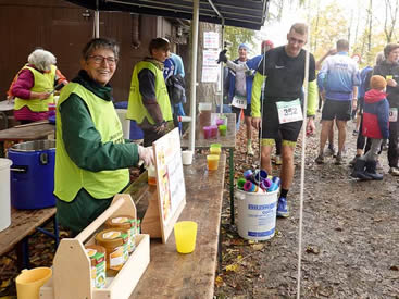 Wieder dauert es eine ganze Weile, bis die letzten Läuferinnen und Läufer im Ziel ankommen. Und dabei nicht nur vom Helfer-Team, sondern auch von zahlreichen Finishern empfangen werden, die längst noch nicht ans Nachhause-Gehen denken. Zu lecker schmeckt einfach der kultige Ziel-Tee aus bunten Bechern, die schon seit Jahren genutzt werden. Nachhaltigkeit wird hier schon länger praktiziert als heuer darüber gesprochen wird. Irgendwann wird es dann doch frisch und es lohnt sich, die TV-Halle in Goldbach aufzusuchen. Nach herrlicher Dusche noch einen Abstecher ins Vereinsheim nebenan, um je nach Laune mit Kaffee und Kuchen oder einem Weißbier den sportlichen Sonntagvormittag abzuschließen.