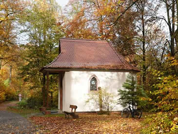 | Im Spessart läuft's | Kaum ist der Lauf zu Ende, kommt die Sonne durch und bringt Wald und Edelweisskapelle zum Strahlen |