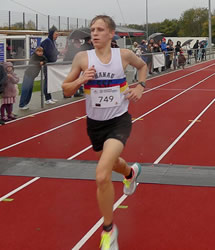 Dabei sah es zu Beginn noch ganz anders aus, denn zunächst ergriff vor allem Christoph Mattner (BMPRO Aschaffenburg) die Initiative, um neben dem bereits erwähnten Leander Fink den Vorsprung auf Sam Blake weiter auszubauen. Dies schien auch zu gelingen, denn beim ersten Kilometer war die Lücke, die die Beiden gerissen hatten, schon ziemlich groß. Doch es gelang Sam, diese recht bald zuzulaufen, um dann ebenfalls den beiden ärgsten Gegnern zu entwischen. Als er schließlich als erster ins Stadion einlief, war sowohl von Christoph Mattner, als auch Leander Fink lange nichts zu sehen.