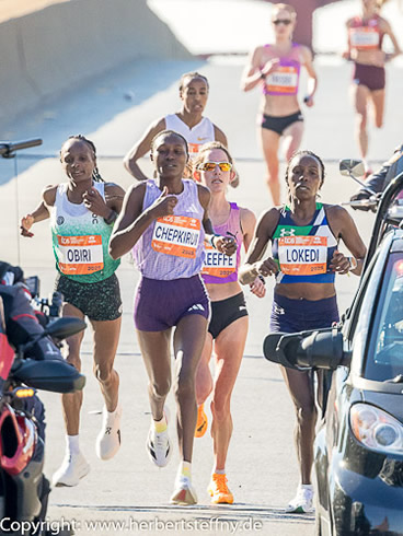 | Bei Meile 25 im Zweikampf - Lokedi und Obiri | Daniela lief am 33. Geburtstag ihren 14. Marathon |