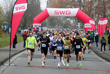 Um 14 Uhr startete der Pohlheimer Bürgermeister Andreas Ruck vor der Adolf-Reichwein-Sporthalle in Watzenborn-Steinberg den 10-km-Lauf der 49. Limes-Winterlaufserie Pohlheim. Obwohl sich den Läufern auf ihrer Runde zahlreiche Steigungen in den Weg stellen, setzte sich mit Mathias Schneider vom TeaM TriranhaS und Moritz Weiß von der LGV Marathon Gießen schnell ein Duo vom Feld ab. Der Vorjahres-Zweite Mathias Schneider steigerte sich auf 33:20 min und holte sich diesmal den Sieg. Der in Pohlheim bereits oft erfolgreiche Moritz Weiß gewann nach 33:45 min als Zweiter die M30.