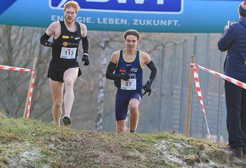 Therese Schuhenn und Ayoub Chalguoum vom ASV Köln dominierten die Hauptläufe über etwa 3,5 km. Wichtig dabei: Beim Euro-Cross gibt es getrennte Rennen für Frauen und Männer. Denn beim Cross geht es ja um den direkten Vergleich Frau gegen Frau, Mann gegen Mann. Chalguoum dominierte auf den zuschauerfreundlichen zwei kleinen und vier großen Laufrunden dabei von der Spitze weg. Nach 11:43 Minuten lag er aber nur neun Sekunden vor Yannick Pütz. Der dreimalige rheinland-pfälzische Landesmeister vom PST Trier konnte die einmal gerissene Lücke zu dem aus Marokko stammenden Läufer des Kölner Klubs zwar nicht mehr schließen, größer ließ er sie aber auch nicht werden. Dahinter sprinteten Pütz' Vereinskameraden Lucas Meyer und U20-Junior Louis Decker um den dritten Platz. Der U18-Jugendliche Theo Knopp (ebenfalls PST) konnte sich als Fünftplatzierter gegen André Ramisch (Silvesterlauf Trier) durchsetzen.