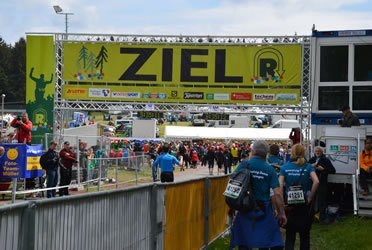 So wäre also alles in schönster Ordnung? Als ich am 17. Mai beim 42. GutsMuths-Rennsteiglauf zum zweitenmal die Wanderstrecke zurückgelegt habe, ist mir klar geworden: Da fehlt etwas. Wir sind zwar in einem schmalen Kanal neben den Supermarathon- und Marathonläufern ins Schmiedefelder Ziel gewandert, aber irgendwie fehlt der Schlußstrich. Die Wanderung hört sang- und klanglos auf. Zu Recht wird keine Zeit genommen, begrüßen kann man uns auch nicht. Wir sind in dem Ziel-Areal der Läufer uns selbst überlassen.